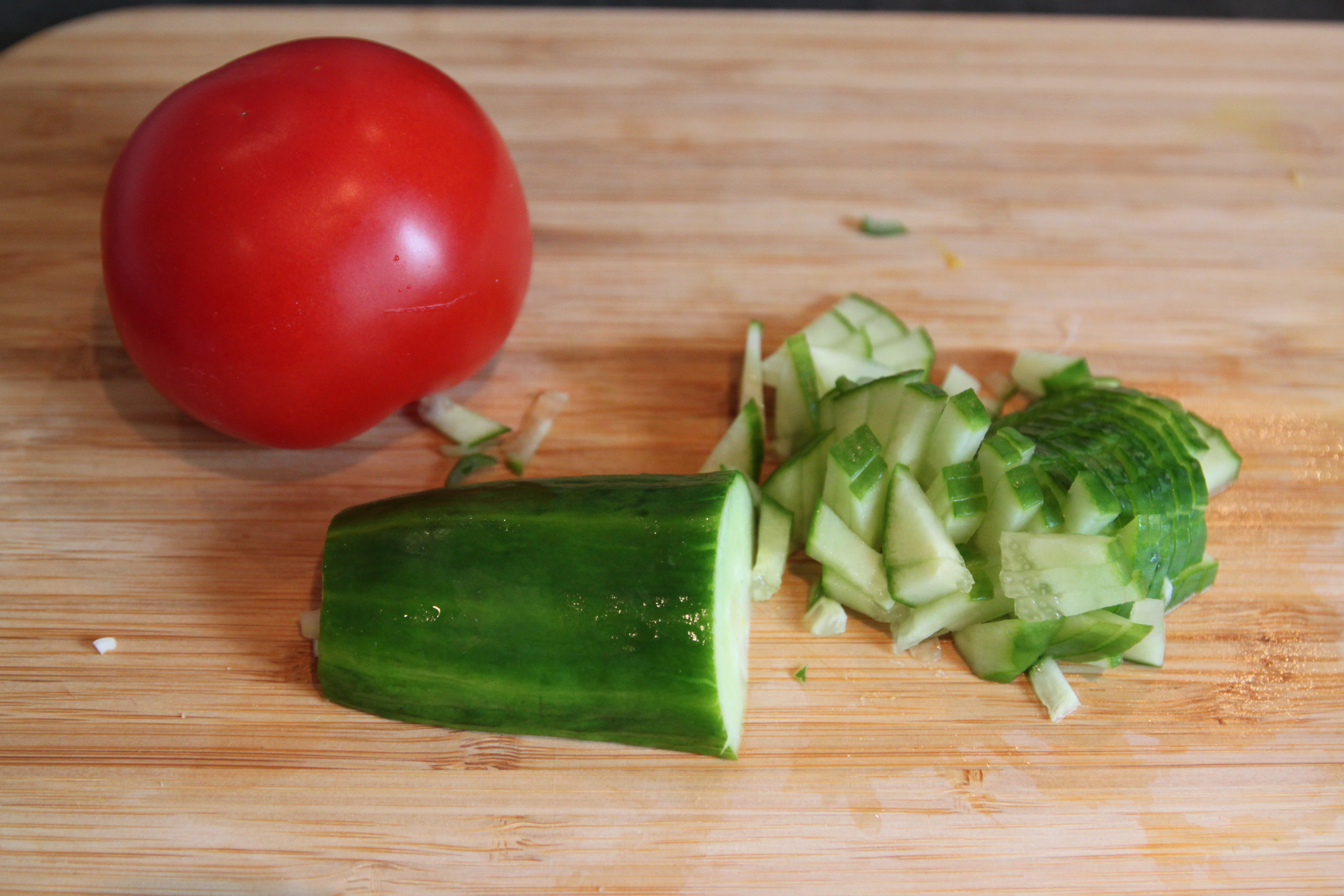 Finhakk litt agurk og 1/2-1 tomat uten innmat.