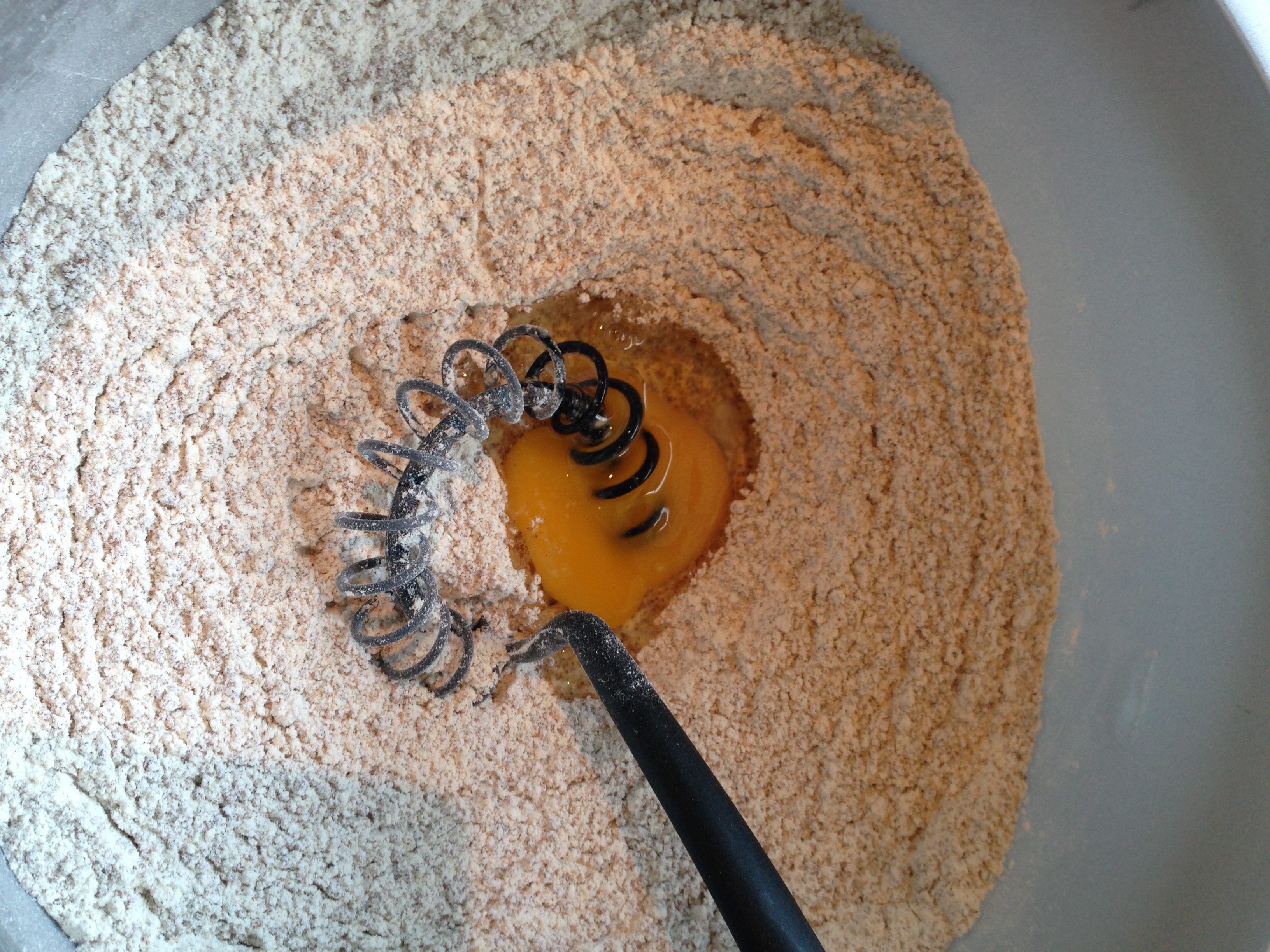 Bland godt sammen de tørre ingrediensene i en bolle.