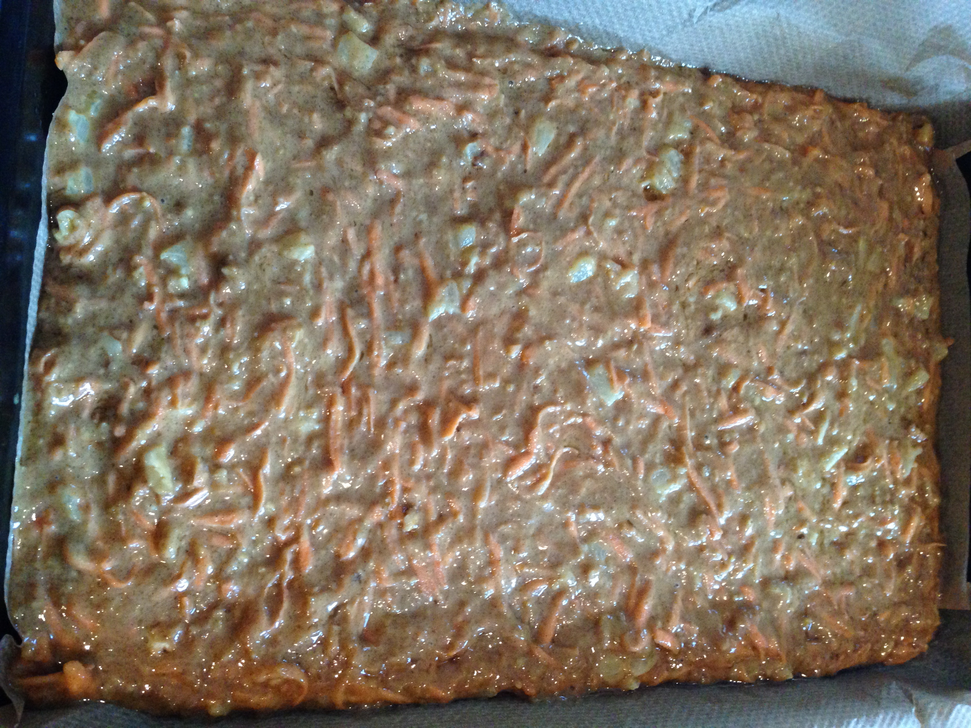 Kle en liten langpanne med bakepapir og ha røren oppi. Stek på nederste rille i ca 30-35 min.