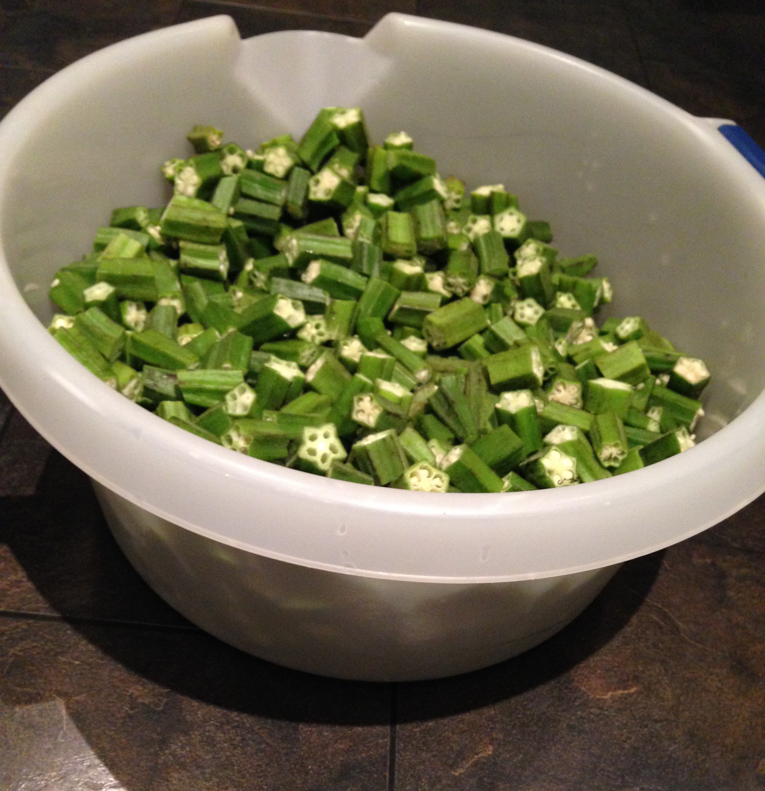 Det tok lang tid å vaske -tørke og kutte 2 kg okra.