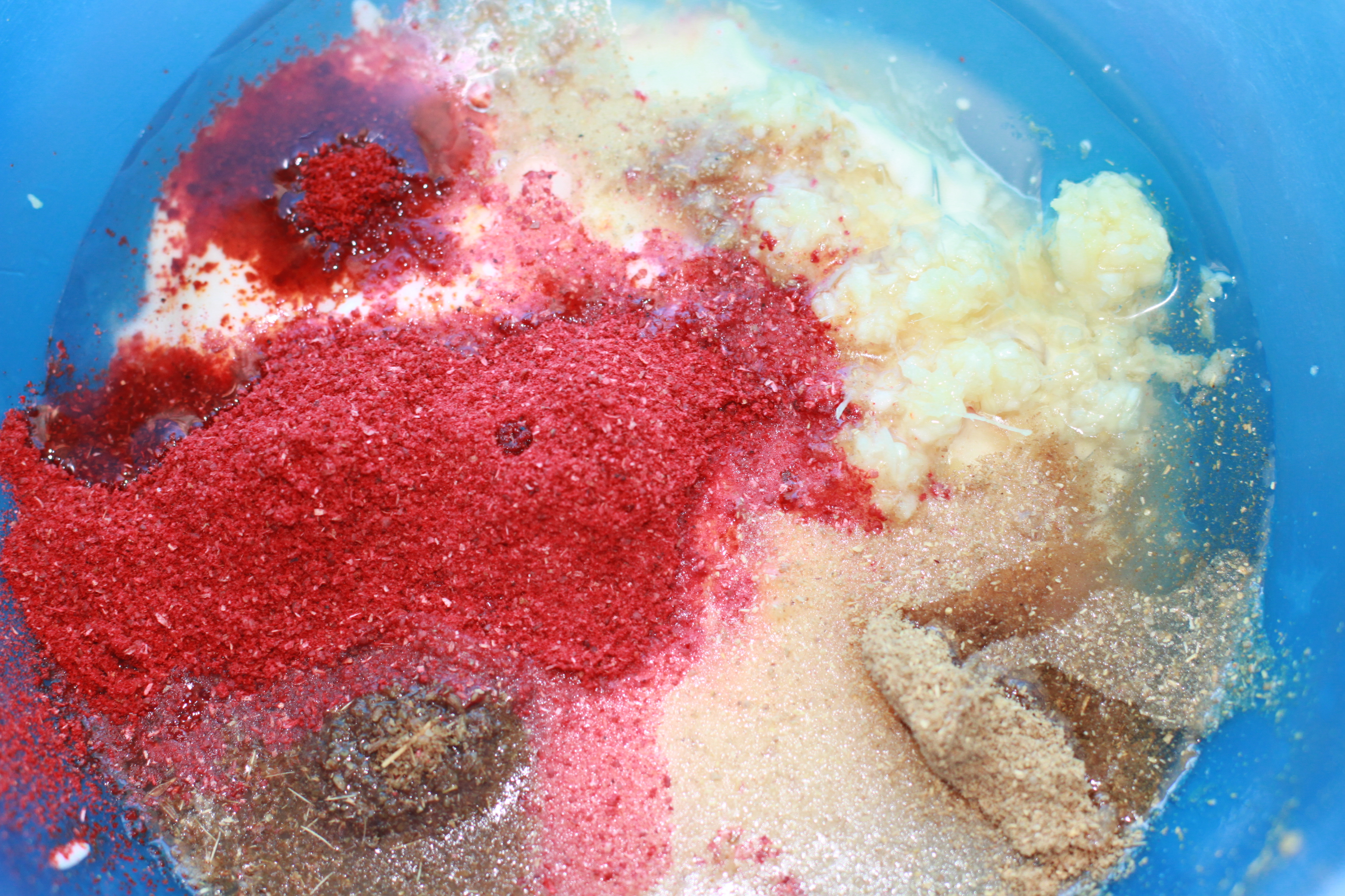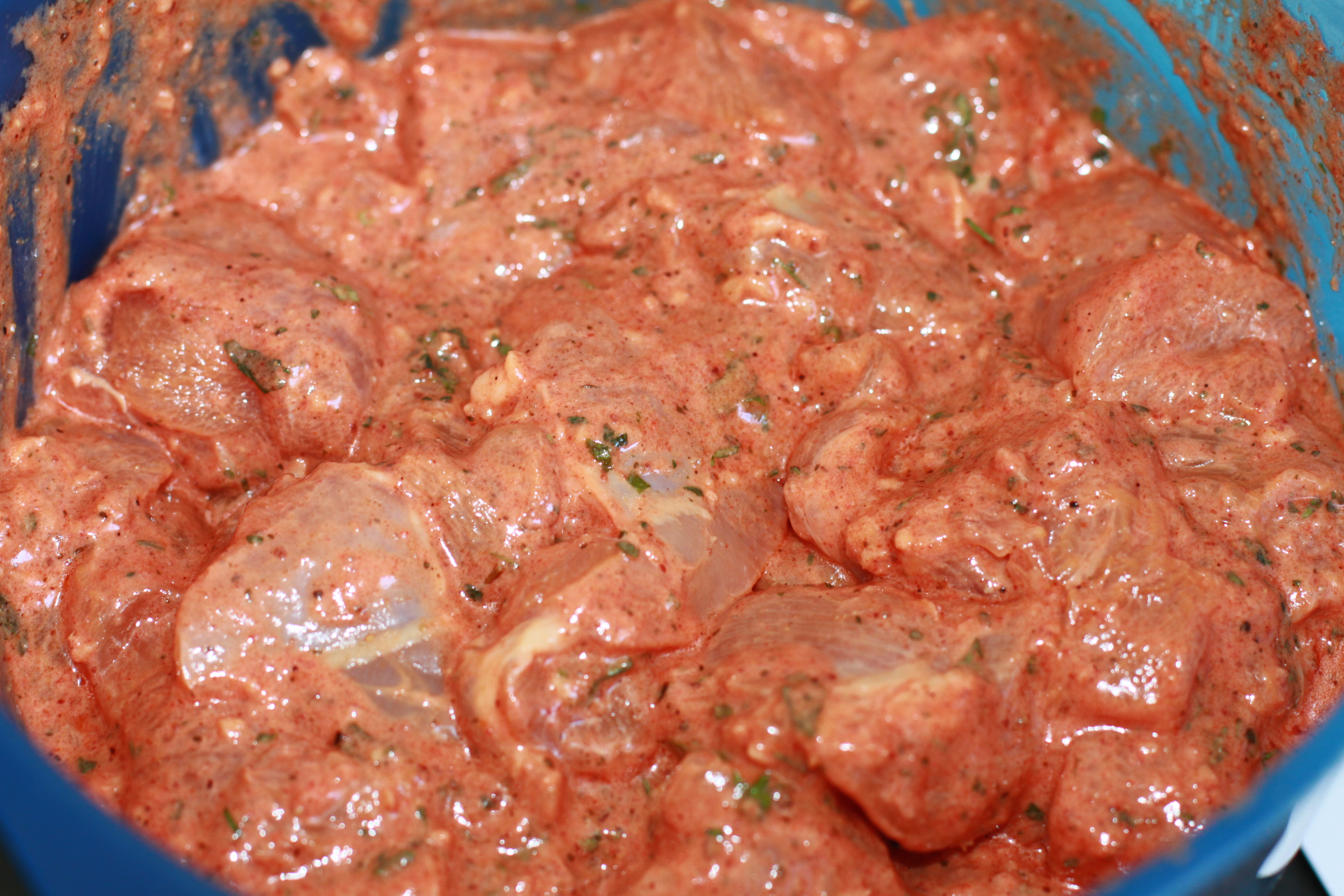 Ha i kylling bitene og bland godt sammen. Sett i kjøleskapet for ca. 2 timer eller natten over.