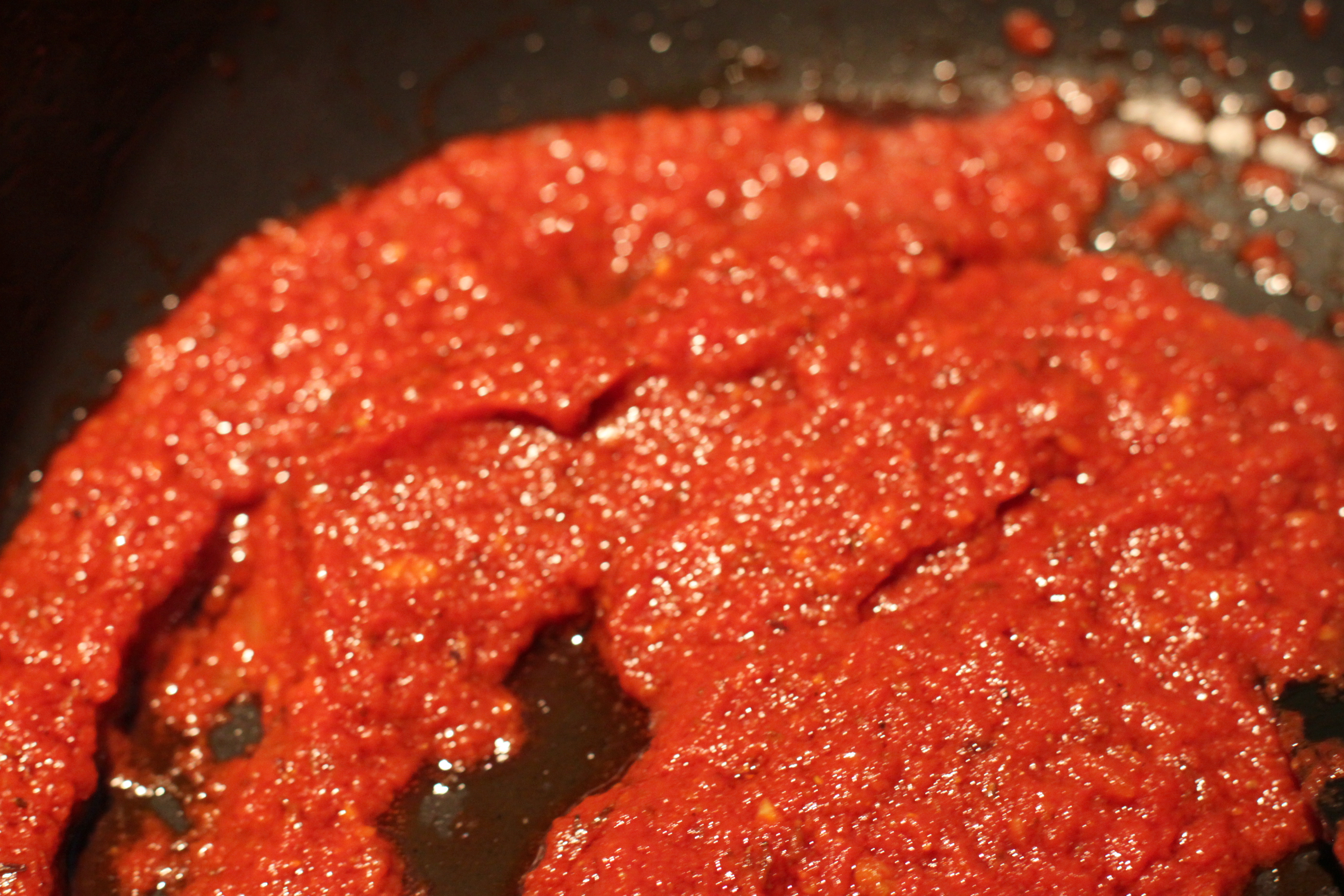 Ha i moste tomater, tomatpurè, ingefær, hvitløk og resten av krydderne bortsett fra garam masala.